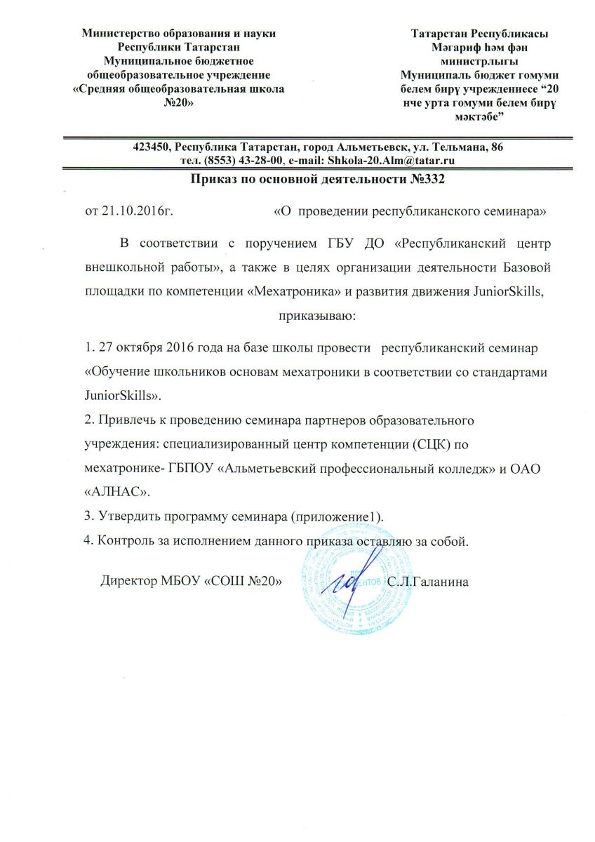 Приказ от 21.10.2016 г. "О проведении республиканского семинара", приложение к приказу