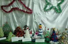 Елочка-красавицаМалышам так нравится,Огоньки на ней горят,Бусы, шарики висят!Выставка совместных работ детей, родителей и педагогов в фойе детского сада. -