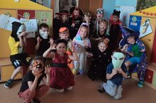 До этого "темного" ))) денечка каждая группа калдовали над рожицами на тыквах, над масками. Педагоги даже превратились в волшебных паучков, чтобы наткать паутинкии создать волшебную декорацию с восхитительными тыквенными светильниками. Детей предупредили, что в этот необычный день в садик может зайти в гости нечистая сила. В ожидании гостей, ребята изготовили сувениры в виде тыковок, разрисовали лица специальными красками. Отдельная история -это конкурсы, игры. Одно их название приводило детей в восторг: «Проголодавшийся монстрик», «Ведьмы», «Найди летучих мышей», "Сладости паука" Со всеми заданиями ребята с легкостью справлялись. Ну а в конце мероприятия состоялась весёлая дискотека. Вот так неожиданно, пришедший к нам издалека праздник –Хэллоуин, доставил много радости и удовольствия всем ребятам. РЭСПЭКТ педагогам БЭЛЭКЭЧ!!!