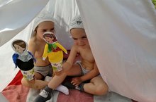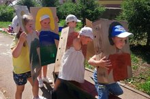 Жаркое лето не помеха для театальных постановок в БЭЛЭКЭЧ. Каждый день одна из групп сниат видео-постаеновки по сказкам. А куклы из бросового материала - коробки, бутылкит, палки.
