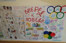 Еще в пятницу воспитанникам было предложено, посоветовавшись с родителями,принести вырезки из журналов, газет, рисунки, лекало, трафареты на спортивную тему для оформления плакатов. Дети с удовольствием клелии, вырезали, рисовали, красили и то что получилось с гордостью развесили в холе детского сад.