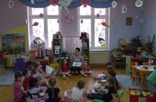 Потому все мероприятия готовим максимально из практики и по практике. Сегодняшняя встреча воспитателей нашего города и района была направлена на то чтобы показать повседневную жизнь группы. А именно круговой сбор и работа по центрам. Гостей было много (40 педагогов) и мы для большего комфорта не стали ограничиваться, показав деятельность всех возрастных групп – 2-е младшие, средние, старшие, подготовительные, разделившись на группы по 5 человек.