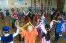 Дети подготовительных групп свою шефскую деятельность над воспитанниками младших групп проявили в форме игрового часа - играли с малышами игры народов мира. Подарили им атрибуты игр и даже элементы костюмов народа. Завершили день театральными постановками по сказкам народов мир, подготовленные детьми старших групп.