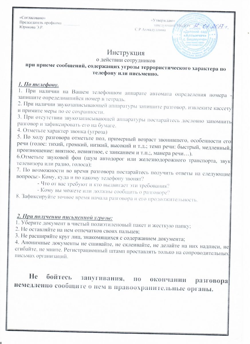 - Инструкция руководителю ОУ по обеспечению безопасности, антитеррористической защищенности сотрудников и обучающихся в условиях повседневной жизнедеятельности