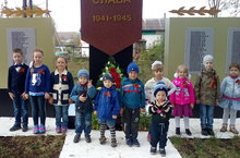 Дарит им тюльпаны.Воспитанники ДОУ приняли участие в митинге посвященному празднику Великой Победы