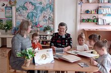 В рамках Года педагога и наставника в нашем ДОУ прошла встреча с ветераном педагогического труда Афониной Надеждой Борисовной. Встреча прошла в теплой обстановке. Педагог поделилась своим педагогическим опытом. Листая альбомы с фотографиями вспоминала интересные истории, моменты из своей трудовой деятельности. Наши детки подарили Надежде Борисовне открытку сделанную своими руками.