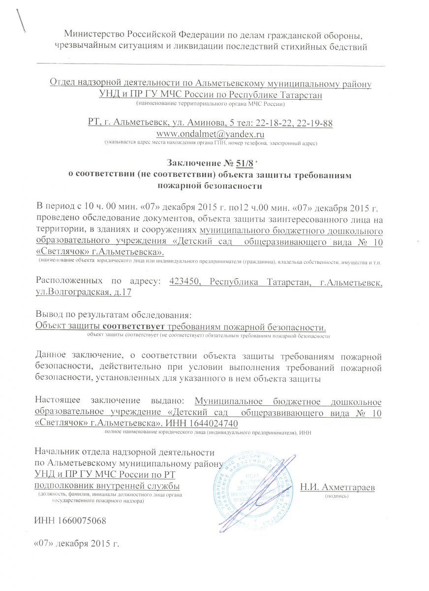 Заключение о соответствии объекта защиты требованиям пожарной безопасности