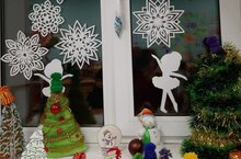 В детском саду готовятся к Новому году! Украшают окна ажурными снежинками, новогодними персонажами!