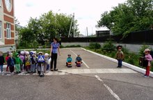 Сегодня во второй младшей группе была проведена сюжетно-ролевая игра «Путешествие по городу». Малыши побывали в роли пешеходов, водителей, инспектора дорожного движения, светофора. Ребята показали знания о безопасном поведении на дороге, которые они получили на занятиях в течение учебного года. В «путешествии» ребята отгадывали загадки, читали стихи о светофоре, автомобиле, автобусе.
