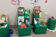 Осень - красивое и щедрое времягода.Перед тем, как погрузиться в зимний сон природаодариваетнас яркими красками, всевозможными плодами и цветами,радужным ковром листьев.Осень- это удивительное время,когда можно пофантазировать и проявить своё творчество.В нашем детском саду традиционно проводится выставка совместного творчества детей и родителей "Краски осени".
