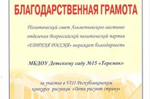 Благодарственная грамота Альметьевского отделения ТРО ВПП "Единая Россия"