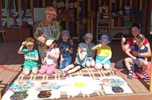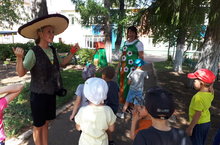 28 июля в здании 2 прошло развлечение "Приключения на лесной полянке", завершающее неделю, посвященную экологии. Чтобы попасть в лес, детям нужно было ответить на вопросы Лесовичка и пройти экологическую тропу. А в лесу начались настоящие приключения. Сказочные персонажи Лето и Лесовичок дали задание ребятам собрать для белочки шишки, грибы, ягоды, а для медведя клюкву. Встретили в лесу крота, побывали у него в гостях, пройдя через тоннель в его нору. А затем в лесу начался пожар и ребята научились правильно его тушить. Вернувшись с лесной прогулки, дети решили поухаживать на своем участке за цветами. Развлечение получилось очень веселым, интересным и поучительным!