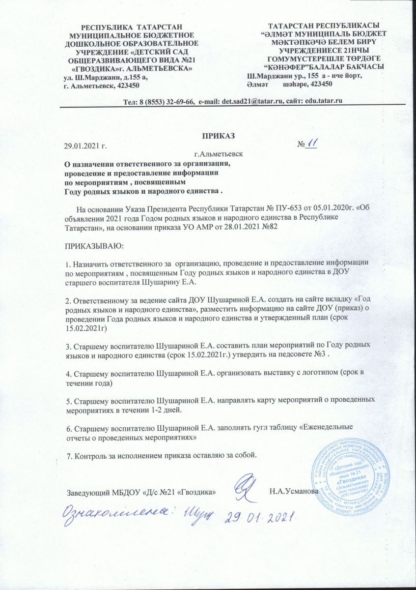 МБДОУ «Детский сад общеразвивающего вида №21 «Гвоздика» г. Альметьевска»/Муниципаль бюджет мәктәпкәчә белем бирү учреждениесе Әлмәт шәһәре "21нче "Кәнәфер"гомумүстерешле балалар бакчасы"/МБДОУ д/с № 21 "Гвоздика"