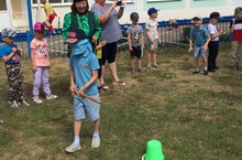 В гости к детям пришел Батыр. Он рассказал историю праздника, помог прочувствовать его дух и вместе с детьми активно участвовали во всех состязаниях: это бег в мешках, бег с яйцами, перетягивание каната, разбивание горшка. Водили хороводы, пели песни.