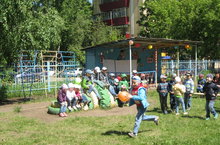 К 1 июня в День защиты детей, как обычно, воспитатели украсили веранды, родители изготовили малые формы (мотоцикл, машину, катер, кошку и др.) для игр детей. Затем был организован праздник, на котором дети под весёлую музыку танцевали, играли в хороводные и подвижные игры, игры-эстафеты. В продолжение праздника дети рисовали на стене творчества и асфальте, играли в бадминтон и с мячом
