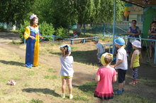 1 июня 2015 года на участке детского сада прошёл праздник «День защиты детей». В ясный, солнечный день дети с удовольствием играли на зелёной поляне в забавные игры: «Передай шар», «Соберись в кружок», и др. Шуточный танец «Если весело живётся …» пришёлся особенно по душе всем детям. Завершился праздник по традиции – рисованием на асфальте. А затем дети катались на велосипедах и играли в разнообразные летние игры