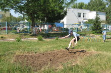 22 июня в нашем ДОУ прошёл «День Прыгуна». В этот день дети пробовали свои силы в разных упражнениях и играх с прыжками. С удовольствием прыгали на батуте, соревновались в прыжках на хопах, кто больше прыгнет в скакалку. Выше всех на батуте прыгал Камиль, а в скакалку дольше всех продержался Максим. Дальше всех прыгнул в песок тоже Камиль. Затем весело играли в «Удочку» и «Ударь в бубен». После праздника дети продолжали прыгать на понравившемся батуте и хопах. Они поняли, что с помощью прыжков можно отлично укрепить здоровье