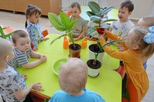 Дети любят ухаживать, поливать растения в группах детского сада, протирать крупные растения влажной тряпочкой, рыхлить почву и опрыскивать листья. Такие элементарные трудовые поручения воспитывают интерес к комнатным растениям и желание ухаживать за ними.