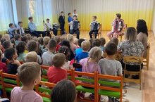 Сегодня наш детский сад, с концертом "Музыка нашего края", посетили учащиеся МБОУ ДО ДШИ № 1. Под руководством преподавателя музыкального отделения Исхаковой Л.А., дети представили интересную музыкальную программу. Познакомили дошкольников со звучанием таких инструментов, как, аккордеон, баян, гитара. Каждое выступление предваряла загадка о музыкальном инструменте, а услышав мелодию знакомой песни - дети с удовольствием подпевали ее. Выступления учеников музыкальной школы были одарены аплодисментами юных зрителей. Мы надеемся, что благодаря таким мероприятиям, творческие возможности детей дошкольного возраста будут находить своё дальнешее развитие в стенах музыкальной школы