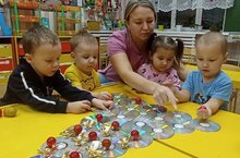 Задачи: закреплять знания о геометрической фигуре «круг»; закреплять представления о величине (большой-средний-маленький); закреплять пространственные представления (внизу-наверху, над-под); закреплять представления о зиме, зимних забавах; продолжать учить пользоваться клеем.