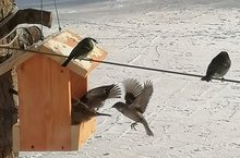 Птицы вьются возле кормушек целый день, а для маленьких детей это целое зрелище.