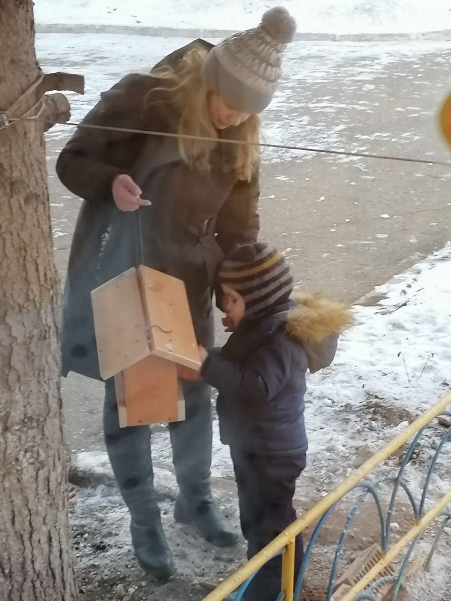 В младшей группе №4 родители вместе с детьми повесили кормушки для птиц. Совместная дружная деятельность воспитателя, родителей и детей. Получилось здорово! Огромное спасибо родителям. Вы этой небольшой заботой о птицах, закладываете в своих детях, зернышко доброты, которое обязательно прорастет и вернется как к самим деткам, так и их родителям.