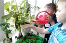 Ребята 7 группы скоро будут собирать урожай огурцов, выращенных в огороде на окне!