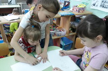 Воспитанники старшей группы МБДОУ №27 погружаются в проектную деятельность. В предверии Дня Космонавтики дети приняли решение изучить все о Космосе. Уже дома они начинают поиск информации по теме. Затем утром в круговом сборе желающие делятся тем, что они узнали нового. После ребятам предлагается выбор деятельности в центрах активности, предварительно подготовленной педагогом.