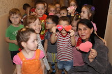 Сегодня необычно тепло и уютно было в детском саду..! Повсюду можно было увидеть развешанные таинственным Купидоном сердца; счастливые лица детей, которые с радостью дарили всем сотрудникам детского сада собственноручно изготовленные сердечки; и мокрые глаза воспитателей, растроганных искренними признаниями детей в любви к своим мамам. Проходя через волшебные ВОРОТА ЛЮБВИ, желающие загадывали заветные желания и оставляли в чудесном домике свои признания и слова благодарности дорогим людям.