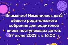 Информация об изменении даты общего родительского собрания! 26.06.2023
