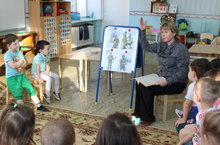 В МБДОУ прошла неделя нравственно-патриотического воспитания. Был разработан и проведен ряд мероприятий, посвященный дню защитника Отечества: подготовительные группы подготовили мероприятие в плавательном бассейне - "Морское путешествие"; в старших группах - "Наши папы сильные, ловкие, умелые"; в средних группах - "Солдатские учения". В каждой группе активное участие принимали родители воспитанников. Неделя прошла в атмосфере духа патриотизма