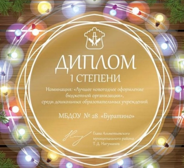 Наш коллектив МБДОУ №28 "Буратино" получил Диплом за I место в городском конкурсе "Новогодняя сказка" на лучшее оформление зданий и территорий среди дошкольных образовательных учреждений АМР. Мы дальше будем стремиться к победам!!!