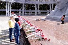 Положите цветы к обелиску,