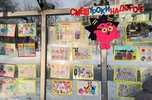 Вот такая напоминащая всем о правилах дорожного движения остановка получилась благодаря рисункам воспитанников нашего и соседних детских садов