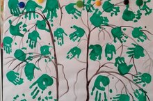 Цель: Продолжать знакомить детей с техникой нетрадиционного рисования - "Рисование ладошками". Познакомить с частями и способами изображения березы.