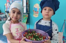С наступлением весеннего авитаминоза детский организм нуждается в особо большом количестве витаминов. Всем известно, что овощи содержат в себе самые разнообразные полезные питательные вещества. Сегодня воспитанники старшей группы "Звёздочки" закрепили знания об овощах и приготовили салат из свежих огурцов, помидоров и зелени. Салат получился изумительный, ведь его приготовили сами ребята! Впечатления остались на целый день.