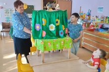 "Международный день театра кукол" в подготовительной группе "Капитошка". Показ сказки "Колобок" для детей 1 младшей группы "Ладушки".