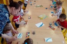 Рисование на тему "Течет ручей, бежит ручей..." в 1 младшей группе "Ладушки".