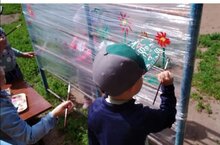 Рисование нетрадиционным методом "Цветочная поляна" (на пищевой пленке).