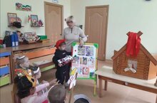 Сегодня воспитанники средней группы "Звёздочки" посетили Драмтеатр. Спектакль по БДД "Патруль огневых дорог".