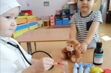 Сюжетно-ролевая игра "Игрушки у врача"в 1 младшей группе "Дружба".