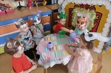 В "День сказки" воспитанники 2 младшей группы "Улыбка" инсценировали сказку "Теремок" для детей 1 младшей группы "Дружба".