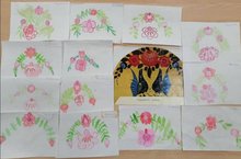 Цель: Формировать практические навыки рисования с образца. Учить детей составлять узор по мотивам Городецкой росписи.