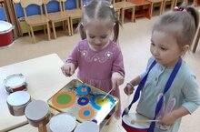Цель: создать положительные эмоции у детей; научить детей соотносить звук музыкального инструмента (барабана) с его названием.