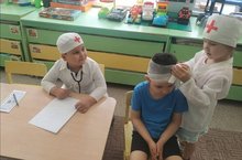 Сегодня отмечается День медицинской сестры и дети средней группы "Капитошки" совмесно с восптателем провели сюжетно-ролевую игру "На приеме у врача". Дети с удовольствием играли роль врача и медсестры, тем самым закрепили представления о профессии медицинского работника