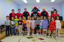 Дети остались довольны встречой, играли в интересные эстафеты, познакомилисьс действующими игроками команды МХЛ СПУТНИК, примеряли хоккейную форму. Получили в подарок трещотки. -