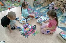В старшей группе "Почемучки". прошло соревнование под названием "Кто быстрее". Дети старательно собирали паззлы. И у них все получилось