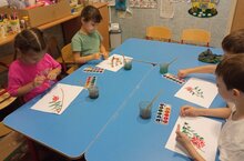 Рябина это яркое и красивое дерево, украшающее наши сады и парки. К ее образу часто обращаются в народном творчестве: песнях, сказках, вышивке, рисунках. Особенно она хороша осенью, когда пламенеют выразительные гроздья плодов. Если нет возможности полюбоваться рябиной вживую, можно рассматривать ее изображение или нарисовать ветку рябины с детьми самостоятельно. А если использовать ещё и нетрадиционное рисование, то это получится уже увлекательная игра. Как это сделали мы с ребятами старшей группы номер 2. На нашем занятии, дети рисовали используя технику мазка кистью и тычка пальчиком.Работа детей с нетрадиционными техниками изображения стимулирует положительную мотивацию рисуночной деятельности, вызывает радостное настроение, снимает страх перед краской, боязнь не справиться с процессом рисования, позволяет детям выразить своё представление об окружающем мире, развивает фантазию, воображение, даёт возможность закрепить знание о цвете, форме.