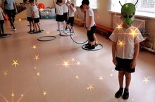 Дети нашего детского сада совершили путешествие по просторам нашей солнечной системы. На каждой планете их ожидало необычное приключение, узнали много интересного о звёздах, планетах и других небесных телах. Юные космонавты с восторгом принимали участие в играх и конкурсах, собирали космический мусор, ездили на луноходах, прыгали на венероболах, наблюдали за звездами, играли в игру космонавты и пришелец, пытались сохранять невесомость, проходили разные испытания, а также отвечали на вопросы из истории космонавтики и закрепили знания о планетах
