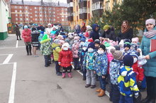 Воспитанники в сопровождении взрослых проследовали до регулируемого пешеходного перехода, раздали памятки пешеходам с призывом соблюдать БДД.